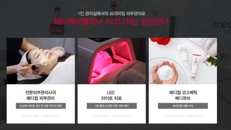 - 시술 후 손상된 피부를 즉각적으로 재생할 수 있는 재생관리가 필수입니다. 메디큐브클리닉에서는 LED 라이트 치료 및 모델링 팩으로 시술 후 자극받은 피부를 즉각적으로 진정, 재생하는데 도움을 줍니다.